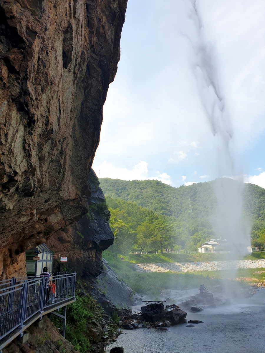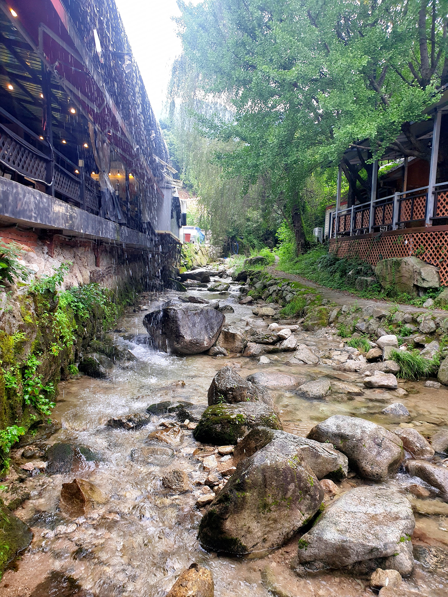 특이한게 바깥쪽이 계곡?인데 지붕에서 인공적으로 비오는듯이 물을 뿌린다.