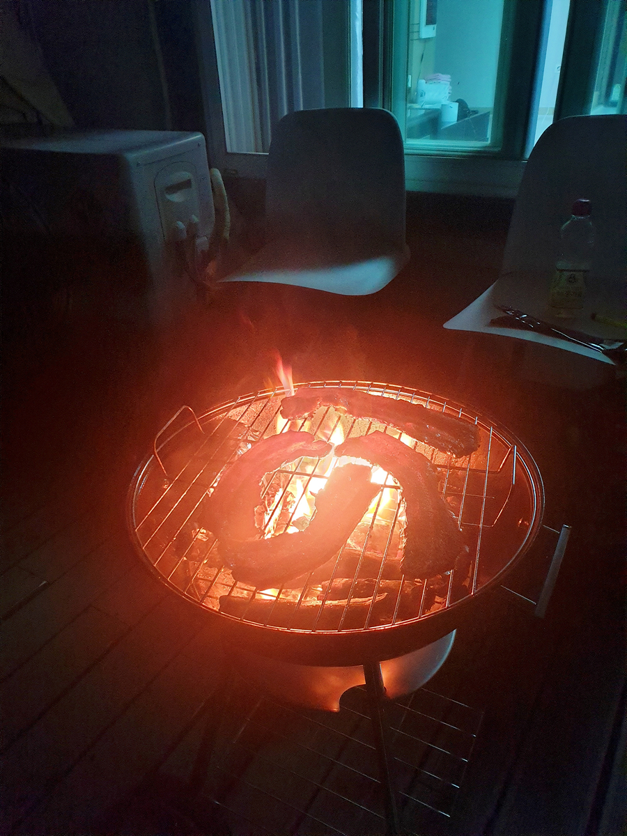 사장님이 첫 에어비앤비 호스팅이시라 이것저것 새걸로 무료제공 해 주셨는데 바베큐 장비 일체(숯포함)를 사용하시라고 배려받음.